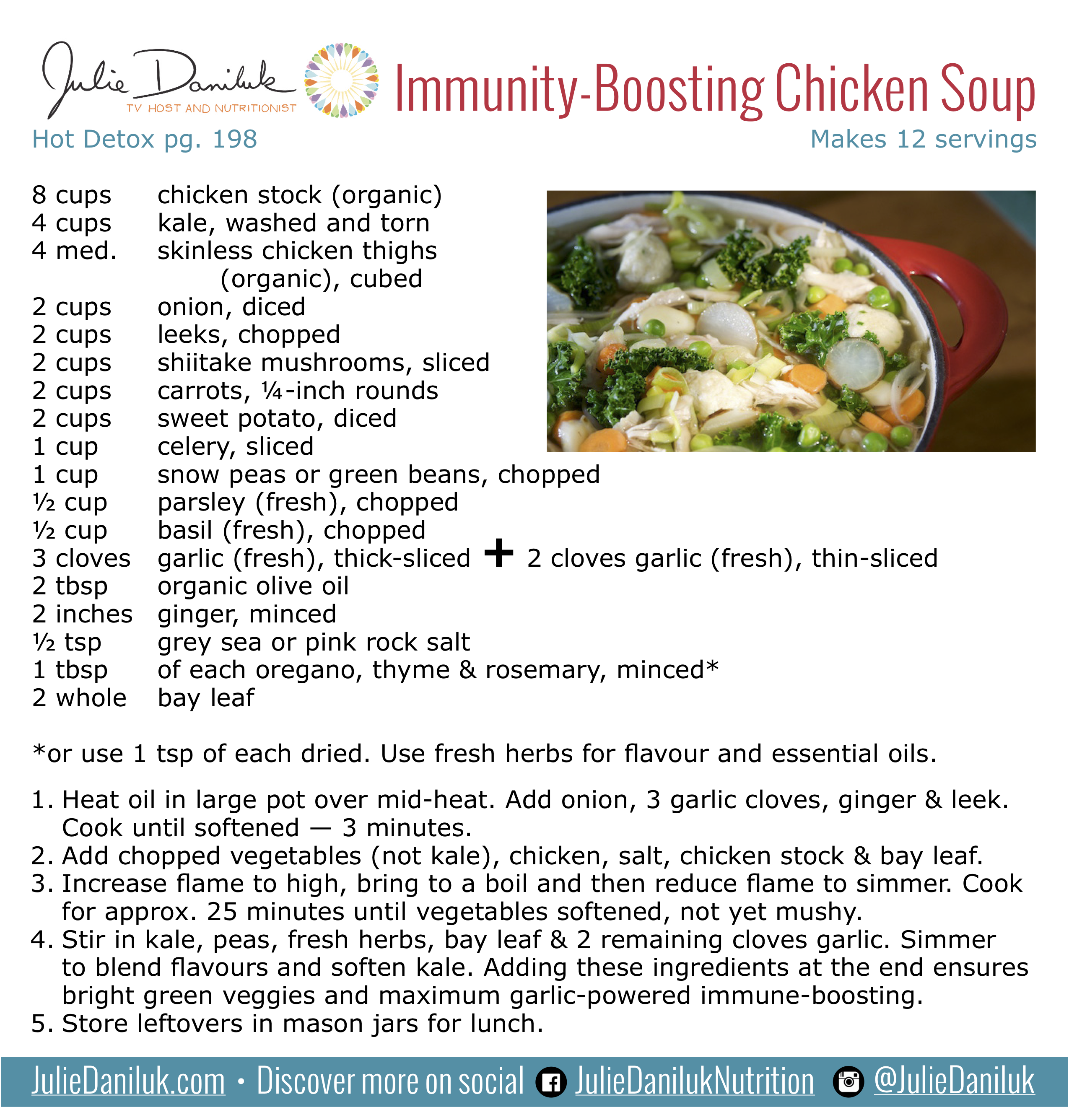 - It tastes so darn good because of all the fresh ingredients. That alone will cheer you up... and a smile has been shown to be the best immunity-booster of all!